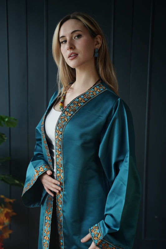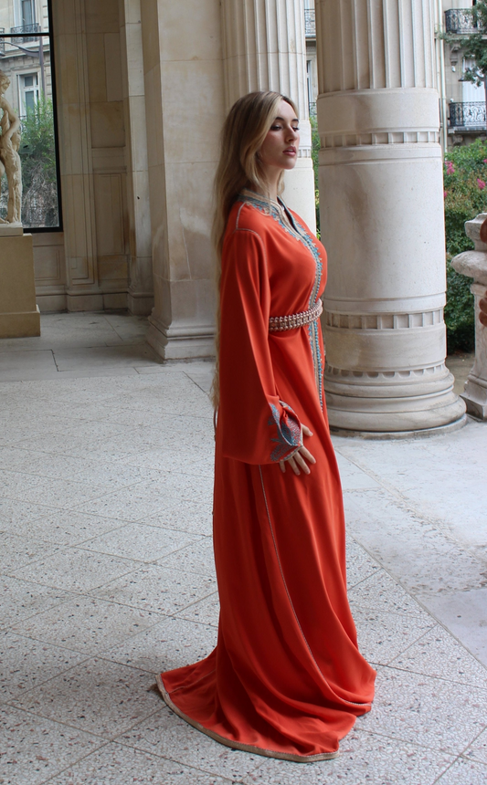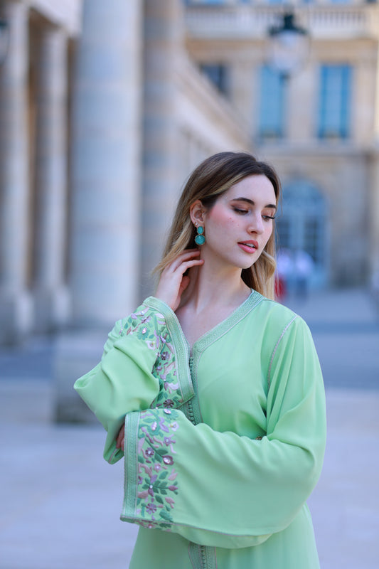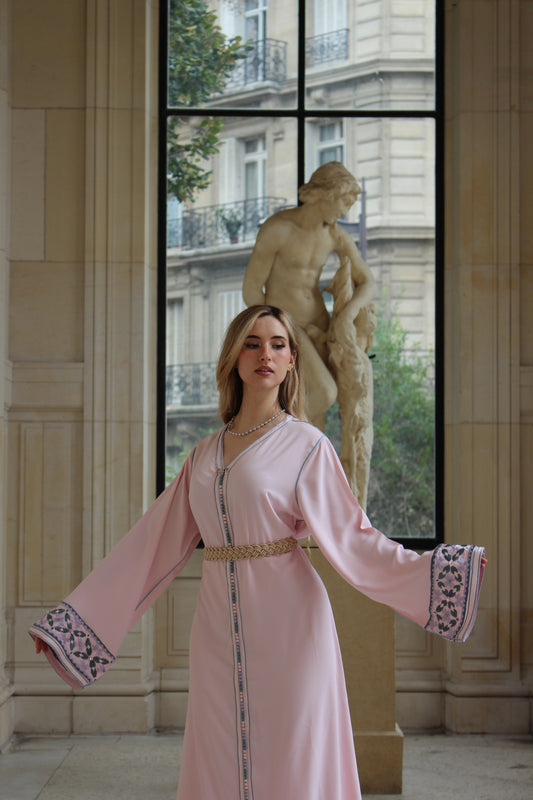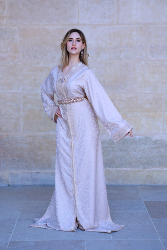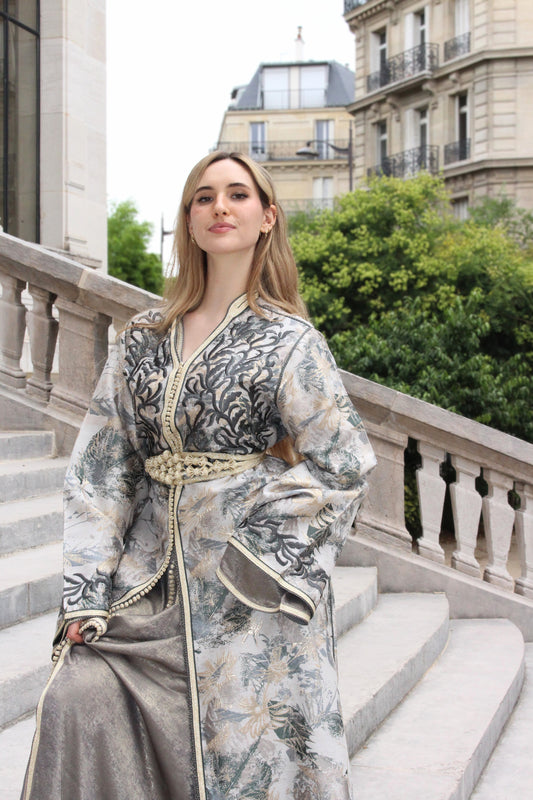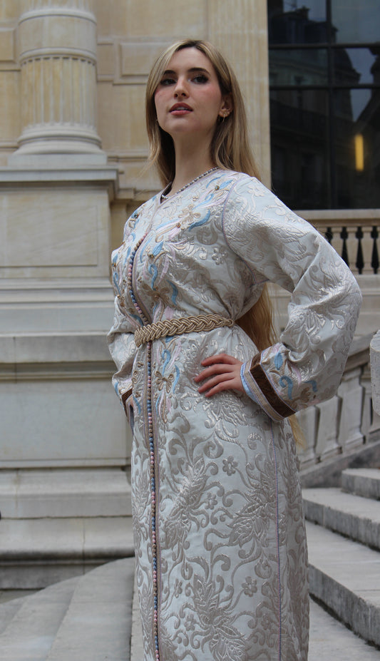 Des caftans élégants et épurés façonnés dans des tissus d’exception.